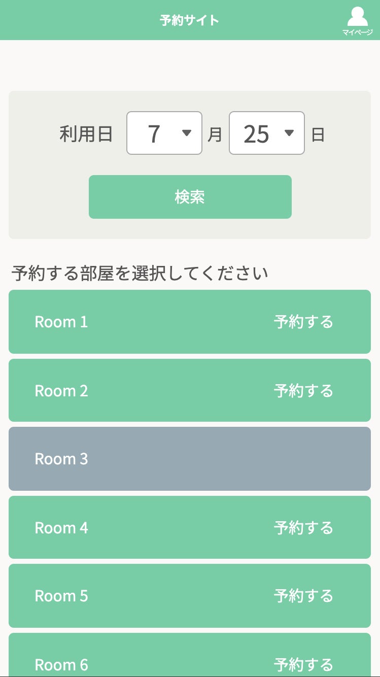 事前登録を行い、希望する宿泊日時をタップするだけで予約が完了します。